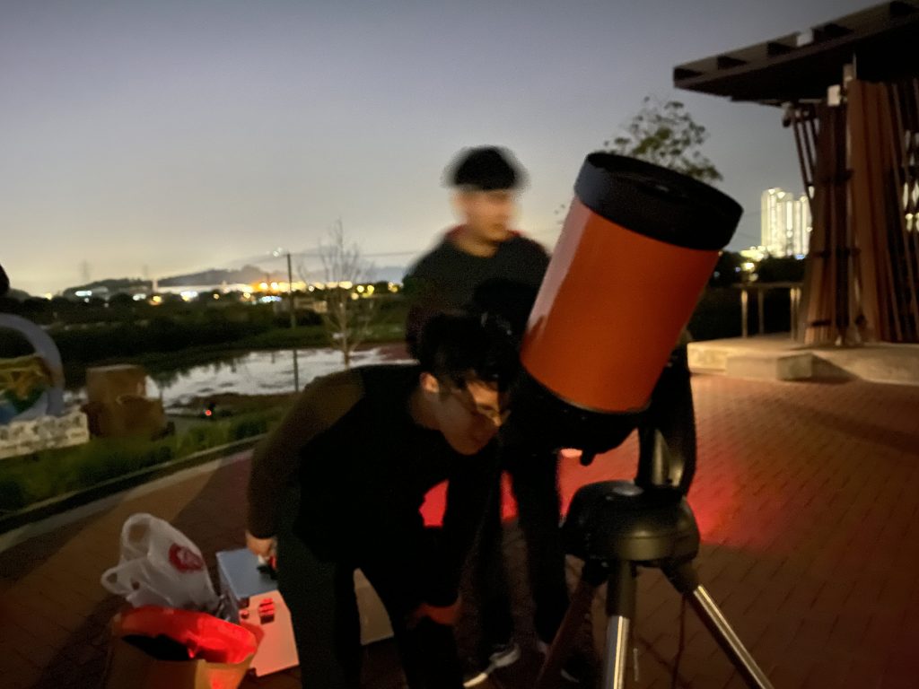 到了觀星地點,其他的委員已架設望遠鏡,準備為大家講解冬夜的星空:獵戶、大犬、小犬…。近月,本會亦添置了望遠鏡接駁手機鏡頭的儀器,讓參加者也可以拍攝到異常美麗的木星。在今次活動中,大家互相交流認識,亦在歡樂的氣氛中度過了一夜。