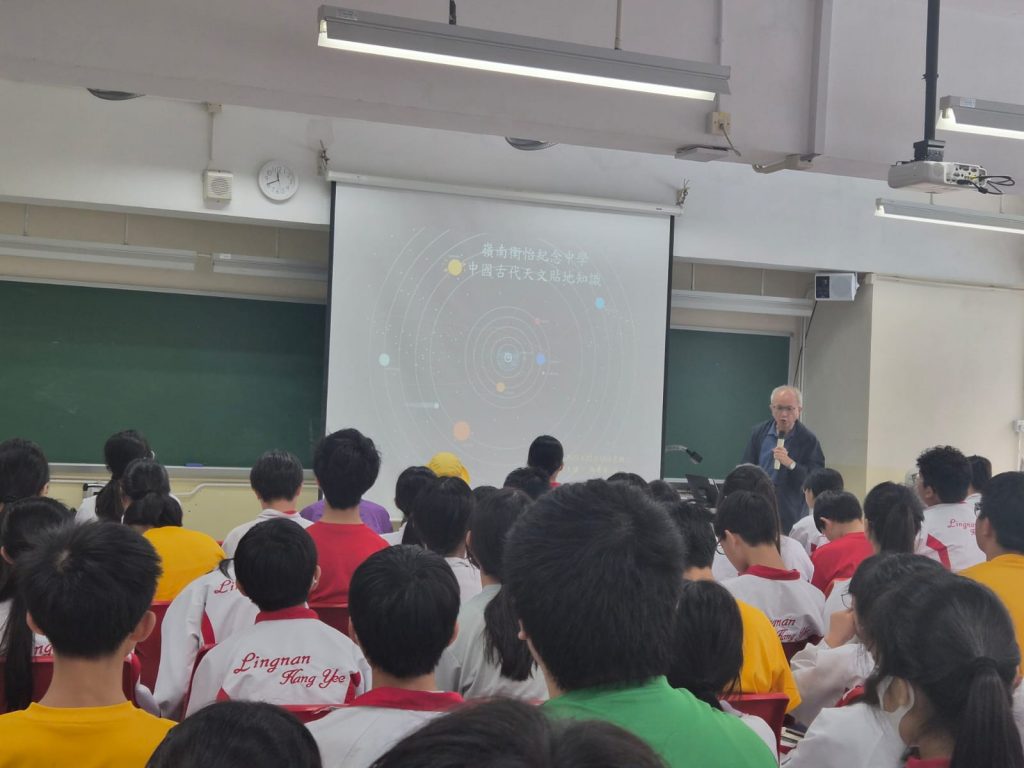 2025年12月,薛勇華老師前往嶺南衡怡紀念中學,為中二同學及二十位長者講解中國古代天文知識講座內容緊貼中國文化及日常生活,並加入不少與曆法相關的趣味話題,深入淺出,讓聽眾易於理解和吸收。講座期間,同學們都非常專注聆聽,反應良好,表示獲益良多。完結時有多位長者主動出來致謝,並表示內容與他們的生活息息相關,特別欣賞關於農曆的趣談。由此可見,此類講座若能多從節令及天文之間的關係切入,更容易引起共鳴。